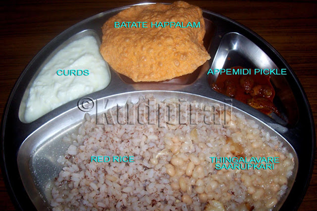 8. Rice, thingalavre saarupkari, batate happalam, appemidi pickle, curds